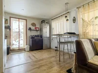 Das geräumige Wohnzimmer ist mit der Küche kombiniert und verfügt über einen zweiten Ausgang direkt zum Grundstück. Ein großer warmer Kamin im Wohnzimmer gibt ein Gefühl von Gemütlichkeit und realer Wärme. Alles bleibt, einschließlich des TV. Die Küche ist mit einem Gasherd aus dem Zylinder, Geschirrspüler, Kühlschrank ausgestattet. Das Haus ist voll geeignet für das ganzjährige Leben und ist mit allem ausgestattet, was nötig ist.