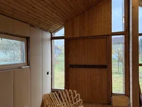Brett, Fenster - PVC und Holz, Türen - Holz.