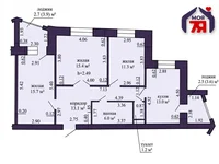 Die Wohnung befindet sich im 4. Stock eines 4-stöckigen Gebäudes mit einem technischen Stock. Die Gesamtfläche der Wohnung beträgt 75.7 m2, die Wohnfläche beträgt 42.4 m2, die Küche ist 13 m2.