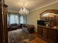 Das Haus ist ein stalinistisches Denkmal der Architektur mit starken Ziegelwänden, einer breiten Treppe und einer luxuriösen Fassade. Die Nachbarn sind ruhig.