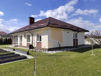 Die Gesamtfläche des Gebäudes beträgt 184 qm, Wohnfläche - 59,1 qm. Der zentrale Teil des Hauses ist zu Recht ein geräumiges Wohnzimmer mit Zugang zu einer verglasten überdachten Terrasse. Das Wohnzimmer ist bedingt durch Säulen von einer voll ausgestatteten Küche mit einer Fläche von 15,4 m2 getrennt. Auch im Haus gibt es zwei Wohnzimmer, einen Ofen und zwei Bäder, während die Fläche eines davon, im Buchtfenster des Gebäudes gelegen, ist fast 12 Quadratmeter. Aber wenn die Fläche des Hauses nicht genug ist, haben Sie mehr als 70 Quadratmeter. Meter kostenlose Planung im Dachgeschoss. Auf der rechten Seite des Hauses befindet sich eine beheizte Autogarage (37,8 qm) mit Rollentüren und einem separaten Eingang zum Gebäude.