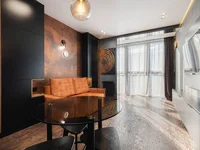 Das Hotel liegt auf der zweiundzwanzigsten Etage eines fünfundzwanzigststöckigen Wohngebäudes, mit Fenstern nach Westen, die ein helles und warmes Interieur in der Wohnung bietet die Möglichkeit, schöne Sonnenuntergänge zu beobachten.