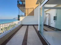 Lineares Penthouse mit einer großen Terrasse mit Blick auf das Meer mit Panoramablick auf den gesamten Strand, von Arpoador bis Leblon und Morro Dois Irmãos.