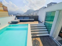 Renoviertes Dreibett-Penthouse zum Verkauf in Ipanema mit Pool und 360° Panorama Meer und Stadtblick.