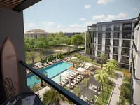 Im Zentrum des Projekts befinden sich ein großer Swimmingpool für Erwachsene, ein Kinderbecken, ein Whirlpool und ein Trockenbrunnen.