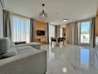Fertigstellung: Die Wohnung ist luxuriös mit hochwertigen Materialien ausgestattet.