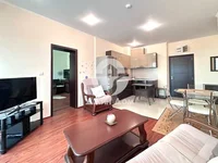 Wir bieten ein geräumiges, möbliertes Apartment mit zwei Schlafzimmern und teilweisem Meerblick im Babylon-Komplex, Resort. Sonnenstrand.