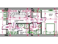 Near the complex, there are a school, a kindergarten, restaurants, and public transport stops. The houses are two-story and three-story buildings, each with its own separate garage or parking space with a capacity for two cars. On the ground floor of each house, there is a living room and a kitchen with a dining area, separated into corners, as well as a storage room and a bathroom with an entrance hall. Parking spaces are available in the southwestern enclosed courtyard.