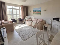 Wir bieten eine geräumige, stilvoll eingerichtete Zwei-Zimmer-Wohnung mit direktem Meerblick in erster Meereslinie im Flores Garden Komplex in Tschernomorez.