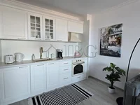 We are pleased to offer a beautiful, ready-to-move-in two-bedroom apartment of 101 sq.m in the luxury Etera 4 complex in Sveti Vlas. Located on the 5th floor, the apartment offers stunning views of the blue sea, green mountains, and the charming orange-red tiled roofs of the surrounding buildings.