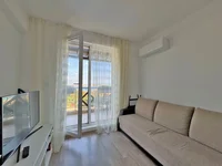 Die Wohnung umfasst ein helles Wohnzimmer mit integrierter Küchenzeile, ein separates Schlafzimmer sowie ein modern ausgestattetes Badezimmer. Große Fenster sorgen für viel Tageslicht und ein angenehmes Wohngefühl. Der Balkon lädt zum Entspannen ein und bietet einen direkten Blick auf das Schwarze Meer.