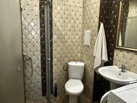 Badezimmer: Dusche, WC, Waschbecken, moderne Sanitäranlagen