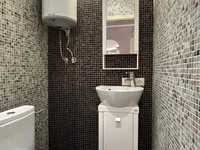 Badezimmer: Dusche, WC, Waschbecken, moderne Sanitäranlagen