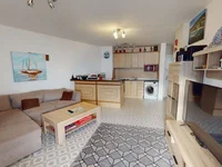 Die Wohnung ist hell, modern und komfortabel eingerichtet und bietet eine angenehme Wohnatmosphäre. Der großzügige Wohnbereich ist offen gestaltet und verbindet sich harmonisch mit der Küchenzone, wodurch ein funktionaler und zugleich gemütlicher Raum entsteht.