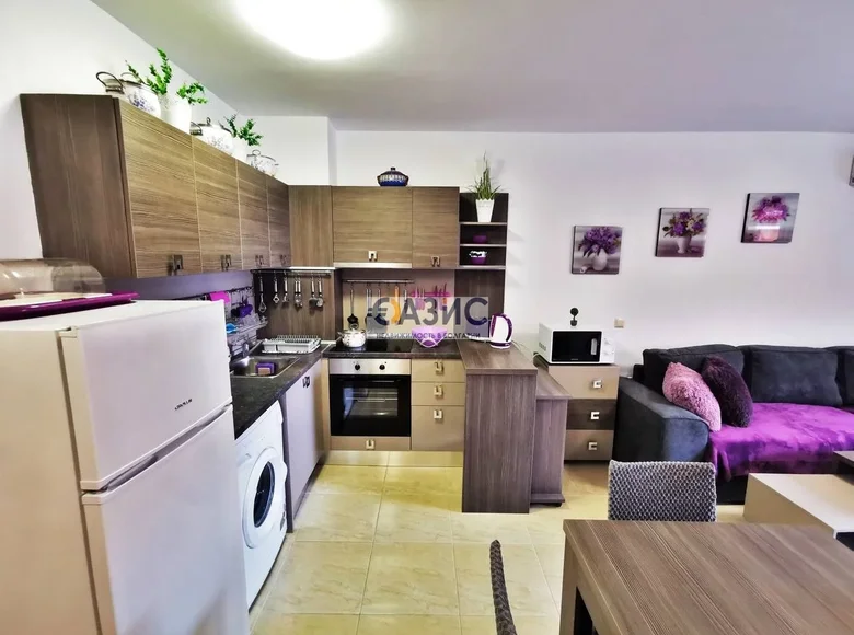 Closed complex "Star Drimes," apartment with 1 bedroom, Saint Vlas Apartment with 1 bedroom, in the complex "Star Drimes," located in Saint Vlas, which is located in the picturesque corner of Bulgaria - Saint Vlas. Price: 65,000 EUR Settlement: Saint Vlas Room: 2 Total area: 65.20 sq.m. Floor: 1/6Payment for maintenance - 8 EUR/sq.m. Construction phase: Building commissioned - Act 16 For sale proposed: cozy, fully furnished 2-room apartment with 1 bedroom, in the closed complex "Star Drimes." Apartment consists of a corridor, a spacious recreation area and a large terrace; bedrooms, with access to the terrace, bathroom. The apartment is fully furnished and sold with all furniture and equipment. The apartment is in excellent condition and fully ready for accommodation. Great for both summer holidays and year-round accommodation. The apartment has two entrances. To the sea 150 meters. The center of St. Vlas is 950 meters away, the airport is 35 km away. The Star Drimes complex is located in a quiet area between Sunny Beach and St. Vlas, 150 meters from the seashore. Star Drimes will take place from 3 separate buildings located near two large asymmetric pools, one of which is with an active water bar. Both pools have sections for children. The complex has a low architecture with inclined roofs and facades in warm colors - typical characteristics of all such projects. The slope gives a beautiful view of the sea. The complex has 270 apartments with various areas. Payment scheme: 2000 euros deposit, 100% when signing a notarial deed of ownership. Saint Vlas is a unique place in nature - due to the combination of sea, mountain and forest air, a special microclimate prevails at the resort. In addition to beautiful nature, Vlas is also famous for its modern yacht marina and amphitheater, where various events are held in the summer. The attraction is also eco-trails - mountain routes suitable for simple hiking in a mountainous wooded area. The resort, although small, is suitable for permanent residence thanks to the developed infrastructure - the presence of year-round bus connections with neighboring cities, a school and kindergarten, a modern equipped hospital, as well as shops and large supermarkets. The nearest large city of Burgas is 40 km. The distance to Varna is 100 km.