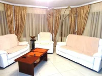 The interior is designed in a classic style with luxury furniture and appropriate accessories - curtains, blinds, lighting fixtures.