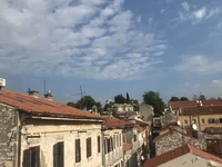 Blick auf das Meer im Hafen von Pula und die Kirche St. Maria Formosa von allen Etagen. Das Gebäude wird ausschließlich als Ganzes verkauft, ideal zur Nutzung als Hostel.