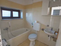 Im zweiten Stock befindet sich eine große Wohnung mit drei Schlafzimmern, Küche, einem Badezimmer, einer Toilette und einer Terrasse von ca. 40 m² mit einem schönen Blick auf das Meer und den Kvarner.
