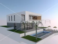 Just a few meters from the sea and accessible only by a pedestrian path, there is a building plot with an approved conceptual project for a modern multi-story house with a pool. The land is located on a peaceful island called Drvenik Veliki, near the town of Trogir, with the nearest village being Vinišće. It is situated slightly outside the settlement in a small bay, with only about ten steps leading to the sea, where a “private” beach is located.