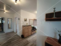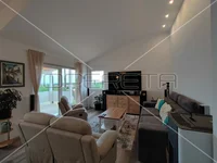 All rooms are connected by a spacious hallway with built-in wardrobes. The central area of the living room with a terrace is connected to the kitchen and dining room and has a total area of 38 m2. The kitchen leads to the garden, while the living room leads to a covered terrace of 12 m2. The panoramic view from the terrace stretches from the town of Nin all the way to the island of Cres.