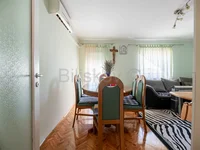 Die Wohnung im ersten Stock besteht aus Eingangshalle, Flur, Wohn- und Esszimmer, Küche, Abstellraum, Balkon, zwei Schlafzimmern und einem Badezimmer. Insgesamt 71,16 m2.