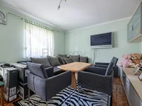 Die Wohnung im ersten Stock besteht aus einer Küche, einem Esszimmer, einem Schlafzimmer, einem Badezimmer und einer separaten Toilette. Insgesamt 35,24 m2.