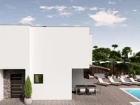 Der Garten jeder Villa umfasst eine große Garage für zwei Fahrzeuge, einen Infinity-Pool, einen Garten, eine Grillzone sowie zusätzliche Terrassen und eine Liegewiese.
