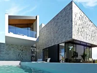 Konzipiert als einzelne Wohneinheit mit einer Nettofläche von 247,14 m² auf zwei Etagen, besteht das Erdgeschoss aus einem offenen Raum, der das Wohnzimmer, den Essbereich und die Küche vereint und sich zum Außenbereich und zum Überlaufpool von 72 hin öffnet m² mit Sonnenterrasse durch Glasschiebetüren. Ergänzt wird der Grundriss durch zwei Schlafzimmer, ein Spielzimmer, ein Badezimmer, ein Gäste-WC, eine Waschküche, eine Speisekammer, einen Abstellraum und einen Technikraum. Die erste Etage besteht aus zwei Schlafzimmern mit eigenem Bad und Ausgang zu privaten Terrassen sowie einem Wellnessbereich mit Sauna, Bad und Ausgang zu einer privaten Terrasse.