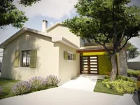 Die Villa besteht aus einem Wohnzimmer mit Küche und Esszimmer, einem Zimmer mit Bad, einer Toilette, einem Heizraum und einem Nebengebäude im Erdgeschoss.