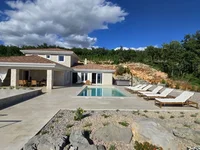 Dieses wunderschöne Anwesen befindet sich auf einem 1.200 m² großen Grundstück mit einheimischen mediterranen Pflanzen, Olivenbäumen und natürlichen Felsen. Der Innenbereich ist modern, anspruchsvoll und gut ausgestattet und verfügt über Klimaanlage, Fußbodenheizung über eine Wärmepumpe und einen Kamin. Die gepflasterte Terrasse verfügt über einen 35 m² großen, beheizten Pool, der 1,7 Meter tief ist, mit Keramik ausgekleidet und mit Wasserelektrolyse ausgestattet ist. Darüber hinaus gibt es eine Hydromassagewanne für sechs Personen, acht Liegestühle zum Sonnenbaden, einen Esstisch im Freien aus slawonischer Eiche und einen Steingrill. Der Hof ist komplett eingezäunt und umfasst zwei Garagenstellplätze.