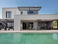 Es befindet sich in einer sanften grünen Siedlung, deren Lage das authentische Erlebnis einer kleinen istrischen Stadt, Intimität und Erholung von aller Hektik und dem Lärm bietet und gleichzeitig nah genug an den dynamischen Städten Istriens mit zahlreichen Annehmlichkeiten liegt. Neben der Lage, die umfassenden Komfort bietet, zeichnet sich die Immobilie auch durch die Bauqualität aus, die langfristige Zufriedenheit und Wohnqualität garantiert. Mit ihrer zeitgenössischen Architektur stört die Villa die Umgebung nicht, sondern schafft eine Synergie aus natürlicher Umgebung und modernem Design. Sie ist als eine Wohneinheit definiert, deren Fläche sich auf zwei Etagen verteilt: Erdgeschoss und erster Stock. Das Erdgeschoss besteht aus einem offenen Raumkonzept, das Wohnzimmer, Esszimmer und Küche vereint, mit Zugang zu einer überdachten Terrasse, auf der sich eine Sommerküche befindet, und einem Eingang zu einem Raum, in dem sich eine Sauna und ein Badezimmer befinden. Der Grundriss des Erdgeschosses wird durch zwei Schlafzimmer mit eigenen Bädern, eine Gästetoilette und einen Abstellraum ergänzt. Der erste Stock besteht aus zwei Schlafzimmern mit eigenen Bädern und Zugang zu einer geräumigen Terrasse. Der Hof ist landschaftlich reizvoll gestaltet und eingezäunt. Für absolute Harmonie sorgt der beeindruckende 78 m² große Überlaufpool mit Liegewiese. Die Lage, Struktur und der Komfort machen dieses Anwesen zu einer idealen Gelegenheit für ein ruhiges Familienleben sowie zu einer Investition zum Zwecke der touristischen Vermietung. Ref: RE-U-32239
