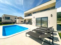 Der im zentralen Teil der Villa gelegene Pool bietet einen einzigartigen ästhetischen Wert und Funktionalität, während das geräumige Sonnendeck Entspannung und Sonnenbaden ermöglicht. Die Gegend um die neu erbaute Villa bietet Potenzial für die Landschaftsgestaltung eines Gartens mit mediterranen Pflanzen und Bäumen wie Zitrus- und Olivenbäumen.