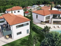 In ruhiger, von Natur umgebener Lage in der Nähe von Poreč werden derzeit drei moderne Villen gebaut. Eine dieser eleganten Villen befindet sich auf einem 751 m² großen Grundstück und hat eine Gesamtwohnfläche von 168,40 m² , verteilt auf zwei Etagen.