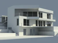 Im Untergeschoss mit eigenem Eingang wird es eine kleinere Zweizimmerwohnung für Gäste (42 m2) mit Zugang zum Garten und eine Taverne/einen Gesellschaftsraum/eine Sauna/einen Fitnessraum mit eigenem Eingang (47 m2) geben. Die Wohnungen und die Taverne werden über Treppen erreichbar sein, die sich über das gesamte Grundstück erstrecken, da die Villa auf einem leicht abschüssigen Gelände liegen wird. Eine leichte Neigung wird der Wohnung im Untergeschoss zugute kommen, da sie, unabhängig von ihrer Position innerhalb der Villa selbst, über genügend Licht und einen Garten verfügen wird.