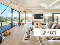 Der Keller besteht aus einer großen Garage für mehrere Autos, einem Zimmer mit Heimkino, einer Bar und einer Weinecke. Im Keller gibt es auch technische Räume für die Verwaltung von Fußbodenheizung, Schwimmbad und Smart Home System.