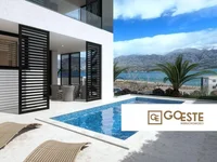 Das Gebäude ist aus hochwertigen Materialien gebaut, weiße Baumit Fassade mit 15 cm Wärmedämmung, ein Teil der Fassade ist mit schwarzem Porzellan mit Spiegeleffekt bedeckt, und alle Zaunwände sind mit Brač Stein bedeckt. Der Landschaftsgarten mit mediterraner Vegetation und Palmen ist mit LED-Licht beleuchtet. Die Pools sind mit einem Glasmosaik bedeckt, und der Rand ist aus 5 cm dickem Brac Stein, und die Pfade in Gärten und Außenterrassen sind mit Semmelrock-Platten ausgekleidet. Die Apartments verfügen über Fußbodenheizung in allen Zimmern und sind klimatisiert und die Etagen der Apartments sind mit spanischem Porzellan Golden Blanco ausgekleidet. Die Badezimmer sind mit hochwertigen Sanitäranlagen, einer Duschkabine ausgestattet, die mit einem Anti-Rutsch-Mosaik ausgestattet ist, und die Wände sind mit spanischem Porzellan ausgekleidet.