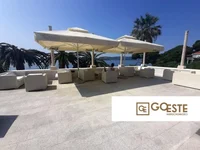Das zweite Gebäude befindet sich direkt am Meer und verfügt über ein Restaurant mit einer großen Küche und einer benachbarten Haupthalle sowie eine geräumige Außenterrasse. Das dritte Gebäude ist eine Anlage, die das Hauptgebäude mit dem Restaurant verbindet, die einen Hotelempfang, Sanitäranlagen und eine Bar mit einer großen Terrasse mit offenem Meerblick umfasst.