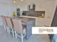 Die Villa besteht aus hochwertigen Materialien wie Betonbau, echtem Stein und Holz. Es ist mit Fußbodenheizung im gesamten Haus ausgestattet, jedes Zimmer verfügt über eine eigene Klimaanlage, und das Wohnzimmer hat auch einen elektrischen Kamin für Heizung. Im Erdgeschoss des Hauses befindet sich ein Wohnzimmer, eine Küche mit einer Insel und eine Speisekammer. Große Glaswände erstrecken sich entlang des gesamten Erdgeschosses, bieten viel Tageslicht und öffnen einen spektakulären Blick von jedem Zimmer.