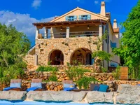 Dieses rustikale Haus erstreckt sich über insgesamt 4 Etagen. Die Raumaufteilung ist für den Wohnbereich einer Familie vorgesehen. Die Gesamtfläche des Hauses beträgt 220 m². In dieser Fläche sind im Keller ein Weinkeller, im Erdgeschoss ein Wohnzimmer mit Kamin, eine Küche und ein Esszimmer, ein Außentoilette und eine überdachte Loggia enthalten. Über eine Innentreppe gelangt man in die erste Etage, die 2 Schlafzimmer, ein Badezimmer und eine große überdachte Terrasse mit Blick auf das Meer umfasst. Im hohen Dachgeschoss befindet sich ein großer Raum, der nach Bedarf in zwei Schlafzimmer und ein Badezimmer unterteilt werden kann. Das Innere der Immobilie ist komplett mit neuen, hochwertigen technischen Geräten und einzigartig gestalteten Möbeln ausgestattet. Das Heizsystem wird durch eine Wärmepumpe betrieben, es gibt ein Klimaanlagensystem, Ventilokonvektoren für Heizung und Kühlung mit einem Steuerungssystem für jedes einzelne Zimmer, hochwertige Holzfenster, neue Installationen und mediterrane Dachziegel.