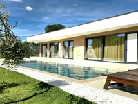 Neue moderne Villa mit zwei Wohnungen und einem gemeinsamen Pool. Eine Zwei-Zimmer-Wohnung mit Wohnzimmer und Bad besteht aus 60 m2. Die zweite Drei-Zimmer-Wohnung mit Wohnzimmer und zwei Badezimmer besteht aus 77 m2. Eine überdachte Terrasse mit insgesamt 32 m2 erstreckt sich vor beiden Wohnungen.