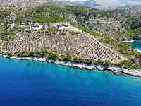 Eine absolut atemberaubende Villa auf der Insel Brač, gelegen in erster Reihe zum Meer auf einem weitläufigen Grundstück von 32.000 Quadratmetern, das für landwirtschaftliche Nutzung vorgesehen ist.