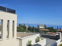 Im Obergeschoss erstreckt sich das zweite Apartment über 113 m² und umfasst zwei Schlafzimmer sowie einen hellen, offenen Wohn- und Essbereich. Eine große Panoramaterrasse bietet atemberaubende Ausblicke auf die Kvarner Bucht und die Inseln Krk und Cres.