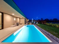Die üppigen, kunstvoll gestalteten und gesicherten Umgebungen heben diese zum Kauf angebotene Villa in Poreč hervor, verankert durch eine klimatisierte Lagune und eine sonnenverwöhnte Ruhe-Terrasse für grenzenlose Ruhe. Durch ihre erstklassige Lage und die intuitive Kombination aus inneren Rückzugsorten und äußeren Bereichen lädt dieses luxuriöse Objekt im Immobilienmarkt Kroatiens als Bastion für harmonische Familientreffen oder als kluge Investition in Istriens florierende Gastgewerbeszene durch einkommensgenerierende Aufenthalte ein.