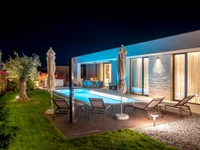 Diese neu fertiggestellte Luxus-Enklave, die zwischen 2024 und 2025 meisterhaft realisiert wurde, erstreckt sich über 241 Quadratmeter eleganten Innenraums auf einem großzügigen Grundstück von 803 Quadratmetern und bietet eine nahtlose Symphonie aus räumlichem Fluss, wesentlichen Annehmlichkeiten, utilitaristischer Anmut, solider Bauweise und fesselnder Anziehungskraft. Ihre versteckte Lage evoziert die seelenrührende Authentizität eines kleinen istrischen Dorfes, gewährt tiefgreifende Abgeschiedenheit, Befreiung vom städtischen Trubel und Lärm sowie eine tiefgreifende Erholung – gepaart mit müheloser Nähe zu Küstengenüssen und kosmopolitischen Vorzügen. Bereichert durch Ausblicke auf sanfte Hügel und die sanften Wellen des Horizonts pulsiert der zeitgenössische Entwurf und die Form der Villa mit raffinierter Modernität und Anmut, untermauert von erstklassigen Baustandards und Ausstattungen, die dauerhafte Freude und verfeinerte Wohnqualität sichern.