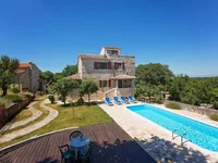 Ein autochthones istrisches Steinhaus mit Swimmingpool und offenem Meerblick steht zum Verkauf in einem wunderschön erhaltenen Dorf nahe Višnjan, einer der charmantesten Hügelstädte im westlichen Istrien. Die Immobilie bietet eine Gesamtwohnfläche von 169 m² auf einem großzügigen, 965 m² großen, angelegten Grundstück, das traditionelle mediterrane Architektur mit Privatsphäre und natürlicher Umgebung kombiniert.