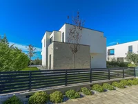 Der Bau der Villa legt Wert auf Langlebigkeit und hochwertige Ausführung. Die Fassade ist mit 10 cm Styropor isoliert und mit einer Silikonbeschichtung versehen, während Styrodur-Dämmung in die Fundamentbetonarbeiten integriert ist, um zusätzlichen Schutz und Wärmeisolierung zu bieten. Das Flachdach ist mit dem Geberit-System konstruiert, mit Unterdruckentwässerung durch Pluvia-Rohre (ein unsichtbares, unter der Fassade liegendes System) für eine effiziente und diskrete Regenwasserableitung. Die Immobilie verfügt außerdem über ein unterirdisches Entwässerungssystem, das mit verstärkten Betonspeicherbrunnen und Sicherheitsauslässen verbunden ist.