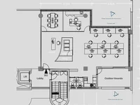 Die Lage des Büros innerhalb der Gebäudelage bietet einen ununterbrochenen Blick auf das Meer zum Süden und Bergblick nach Norden.