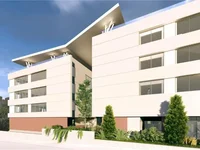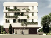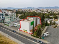 Ein viergeschossiges Gewerbegebäude in Strovolos. Das Gebäude nimmt zwei Grundstücke ein.