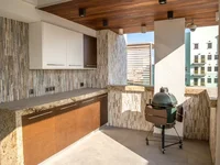 Penthouse: Es verfügt über 6 Schlafzimmer, ein geräumiges Wohnzimmer und eine separate Küche. Es gibt einen direkten Zugang zu der privaten Dachterrasse von 70 m2 mit Sonnendeck und Sommerküche, wo der berühmte “EGG” Grillofen platziert Das Design des Penthauses wurde durch ausschließliche Materialien wie Teakholz, Onyx und Korian hergestellt. Es gibt eine eingebaute Beleuchtung, Einbauschränke und maßgeschneiderte Möbel. Die Vorhänge im ganzen Penthouse sind aus 100% Baumwolle