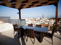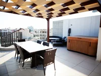 Das Gebäude besteht nur aus 6 Wohnungen, die jedem Bewohner Privatsphäre gibt und bringt alle zusammen und macht es einfach, alle Vereinbarungen zu erreichen. Vom Eingang zur Wohnung haben Sie ein großes Wohnzimmer, eine offene Küche und Panoramafenster, die zur Veranda führen, was ein Gefühl von Weite und im Sommer den Vorteil in der Kombination beider Zonen gibt. Dann gibt es einen Korridor, der zu den Schlafzimmern führt, dies ermöglicht es, sich zu entspannen und vom Lärm aus dem Wohnzimmer zu isolieren. Jedes Schlafzimmer hat auch einen Blick auf die Stadt und das Meer. Von der Veranda aus gibt es eine kurvenreiche Treppe, die zum Dach des Penthouses führt, auf dem es einen Essbereich mit einem Baldachin, einem Ruhebereich und einem Whirlpool gibt, wo Sie sich abends entspannen und atemberaubende Aussicht auf die Nachtstadt genießen können.